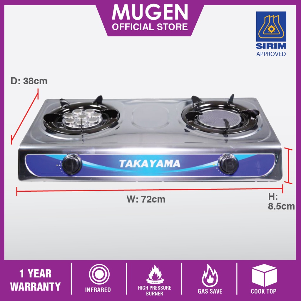 Takayama Hybrid Gas Stove Gas Cooker 8 Jet Burner Infrared Burner Kitchen Stove Double Gas Stove 1 Year Warranty Shopee Malaysia